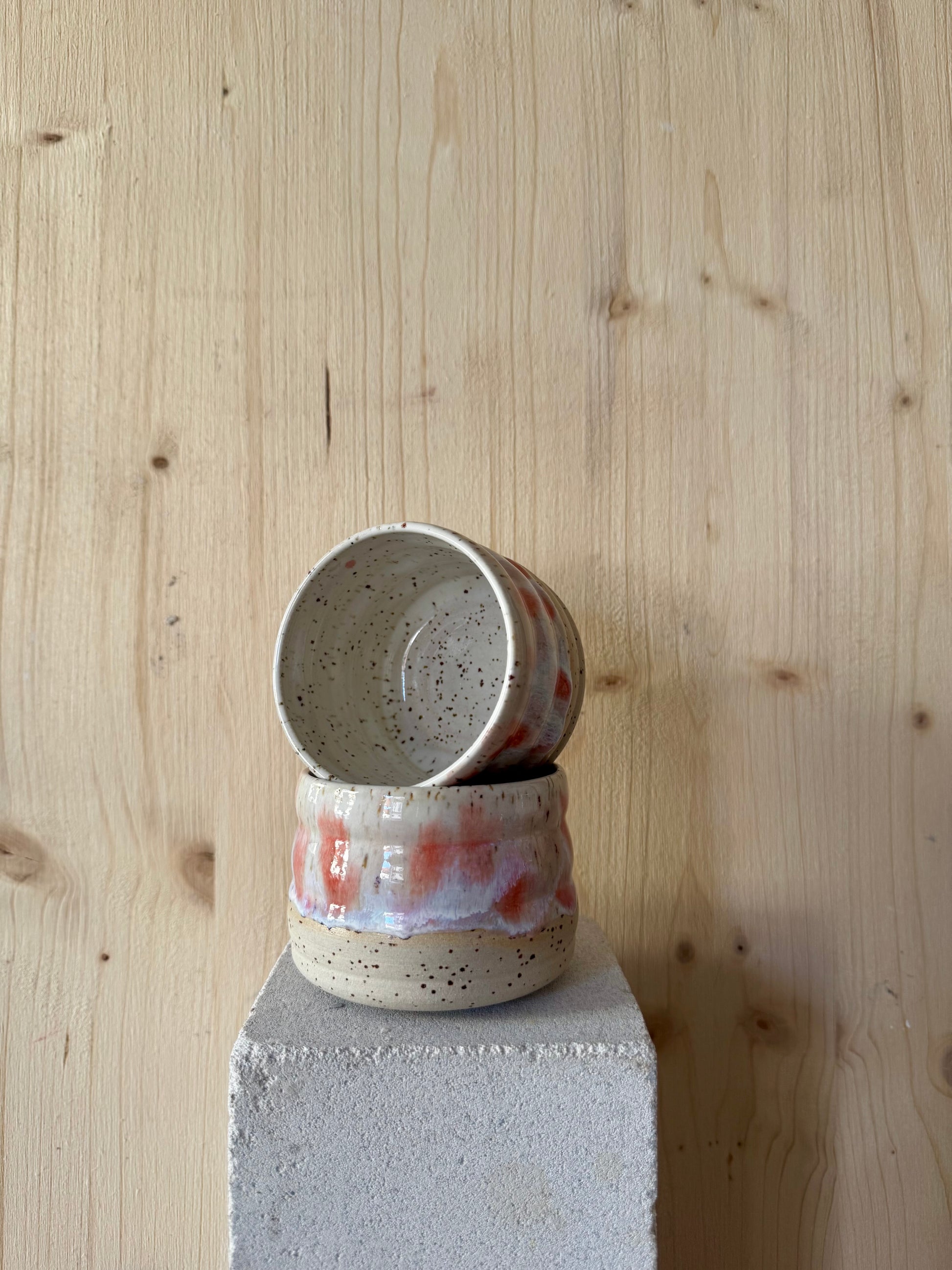 Ob Kaffee, Matcha oder Tee – dieser handgefertigte Becher bringt Farbe und gute Laune in deine Hände. Jedes Stück ist ein Unikat, liebevoll gedreht und in schönen Farbkombinationen glasiert.