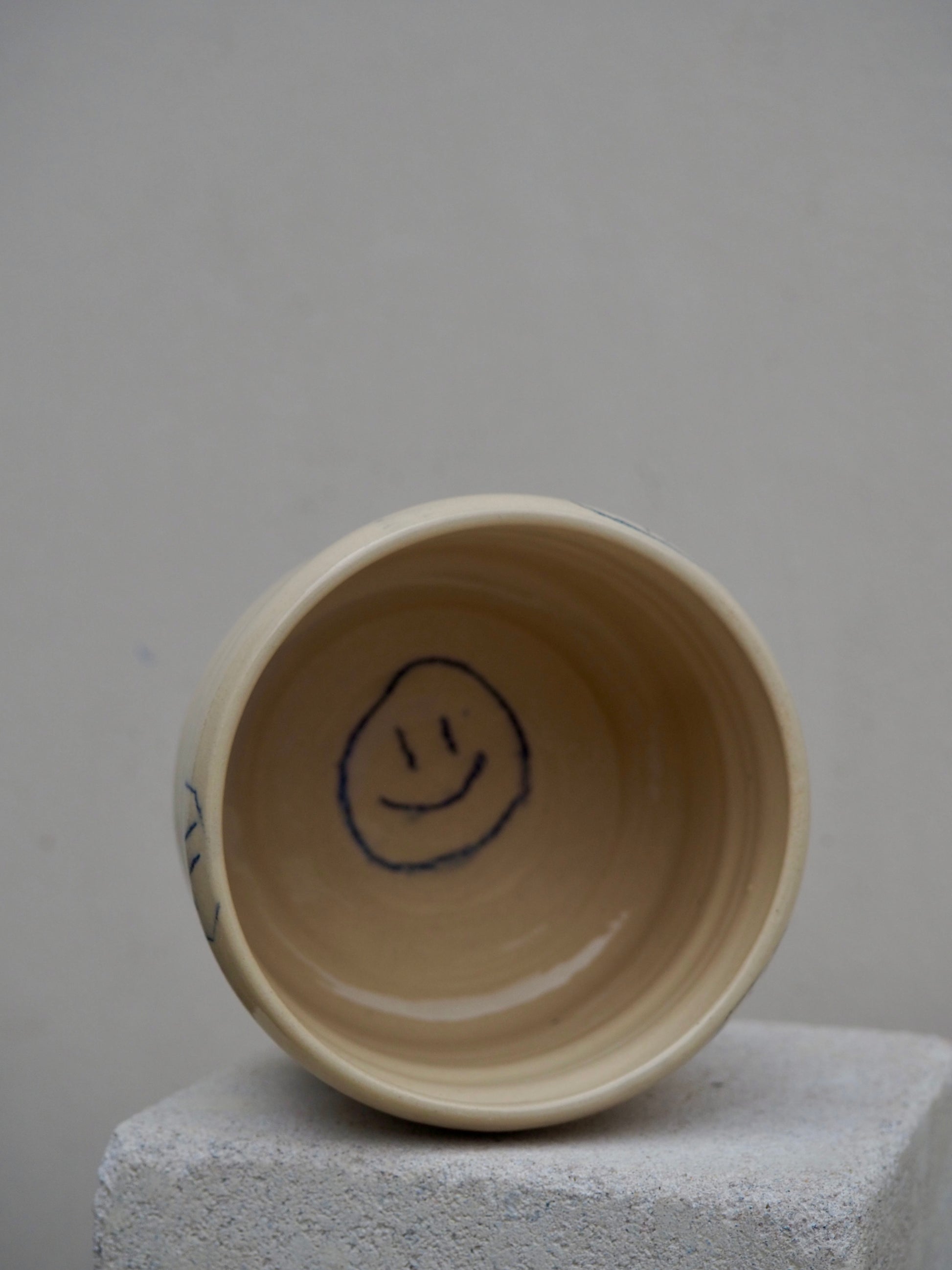Kaffee rein, Stimmung rauf! Der handgemachte Smiley Becher bringt dir schon beim ersten Schluck ein Lächeln auf die Lippen. Leicht, verspielt und mit kleinen blauen Smileys – für alle, die es fröhlich mögen.